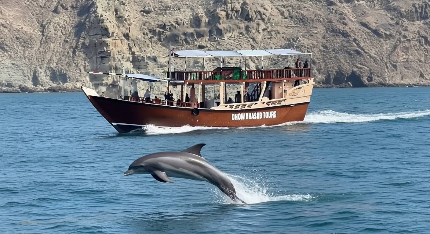 Discover the best Musandam Khasab tour packages with Dhow Khasab Tours.Enjoy a Khasab dhow cruise, dolphin watching, snorkeling, and visits to Telegraph and Seebi Islands.